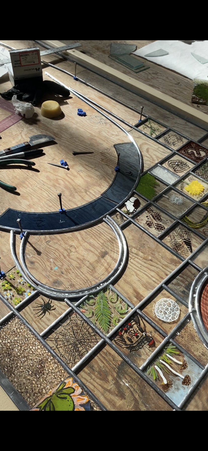 Pre-Session Quilt, 2022 - A Collaborative window for Pilchuck Glass School, Stanwood, WA.