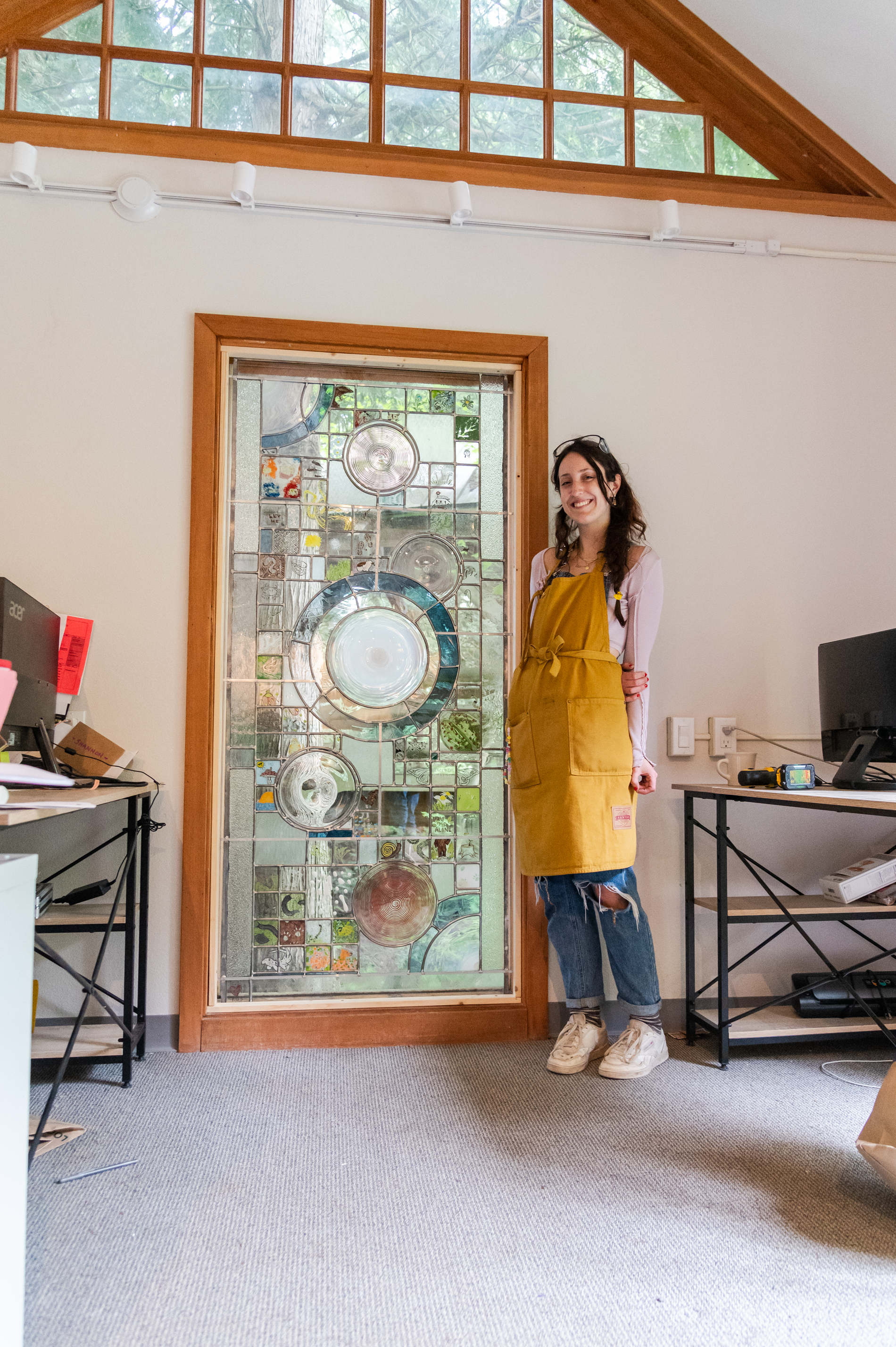 Ellen Sherry is a stained glass artist and conservator who lives in Philadelphia, PA and travels often to the PNW. She received her BFA in Craft and Material Studies with a concentration in glass from University of the Arts in 2017 and has since gone on to open her own stained glass studio. Her newest body of work focuses on the ocean and mysticism. Her work can be found at Pilchuck Glass School, in the Stained Glass Association of America summer 2023 issue and galleries on the East and West coast.