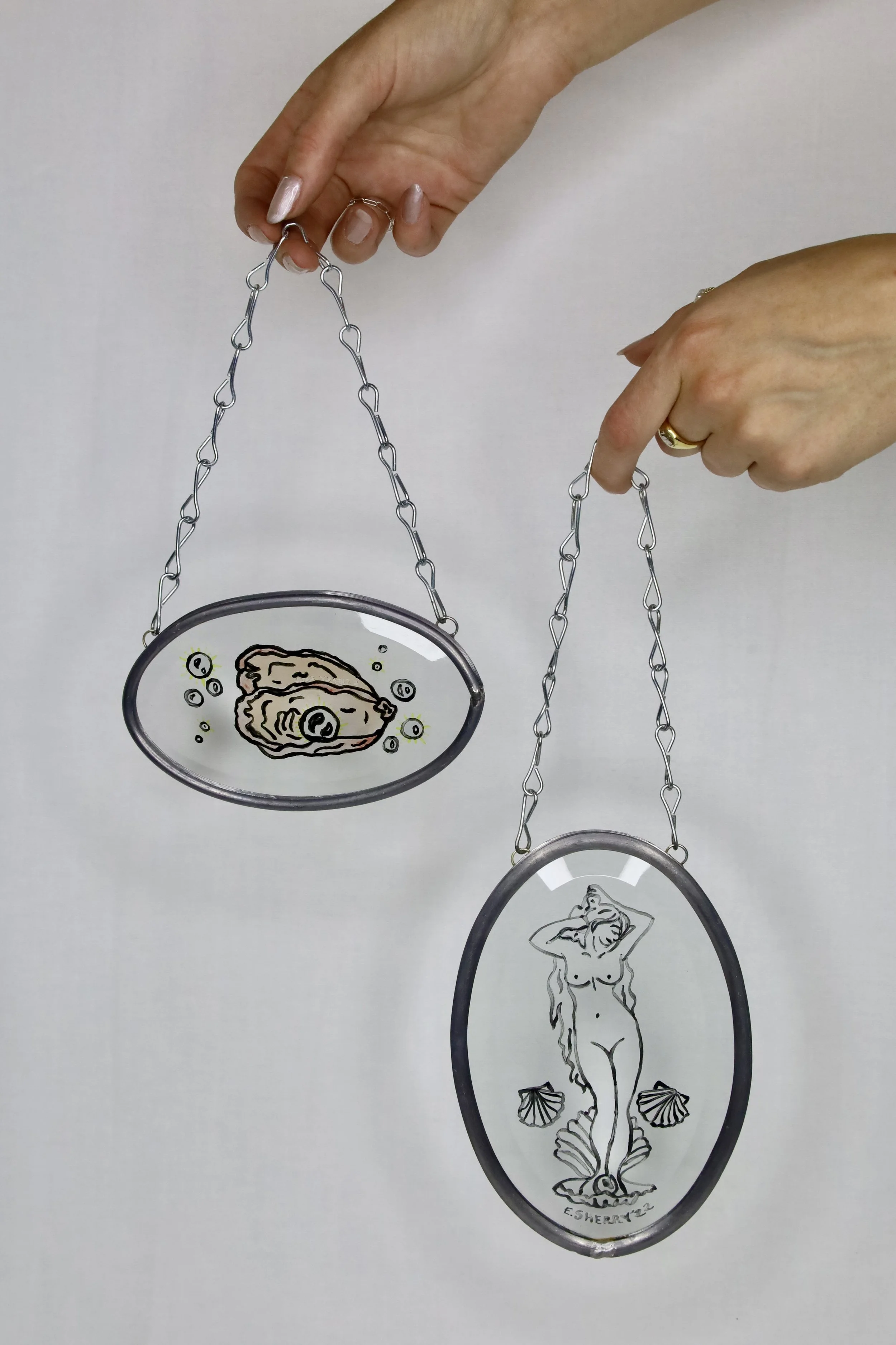 hand blown rondel, hand blown sheet glass, enamel paint, engraving, lead came. 2022.